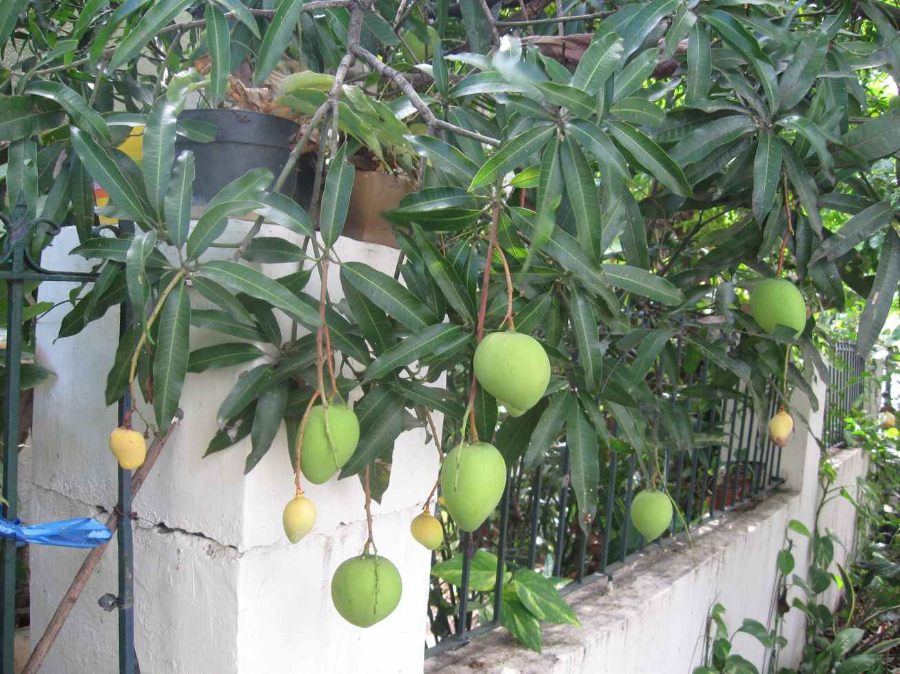 Apple mangoes hang low just outside our gate. |